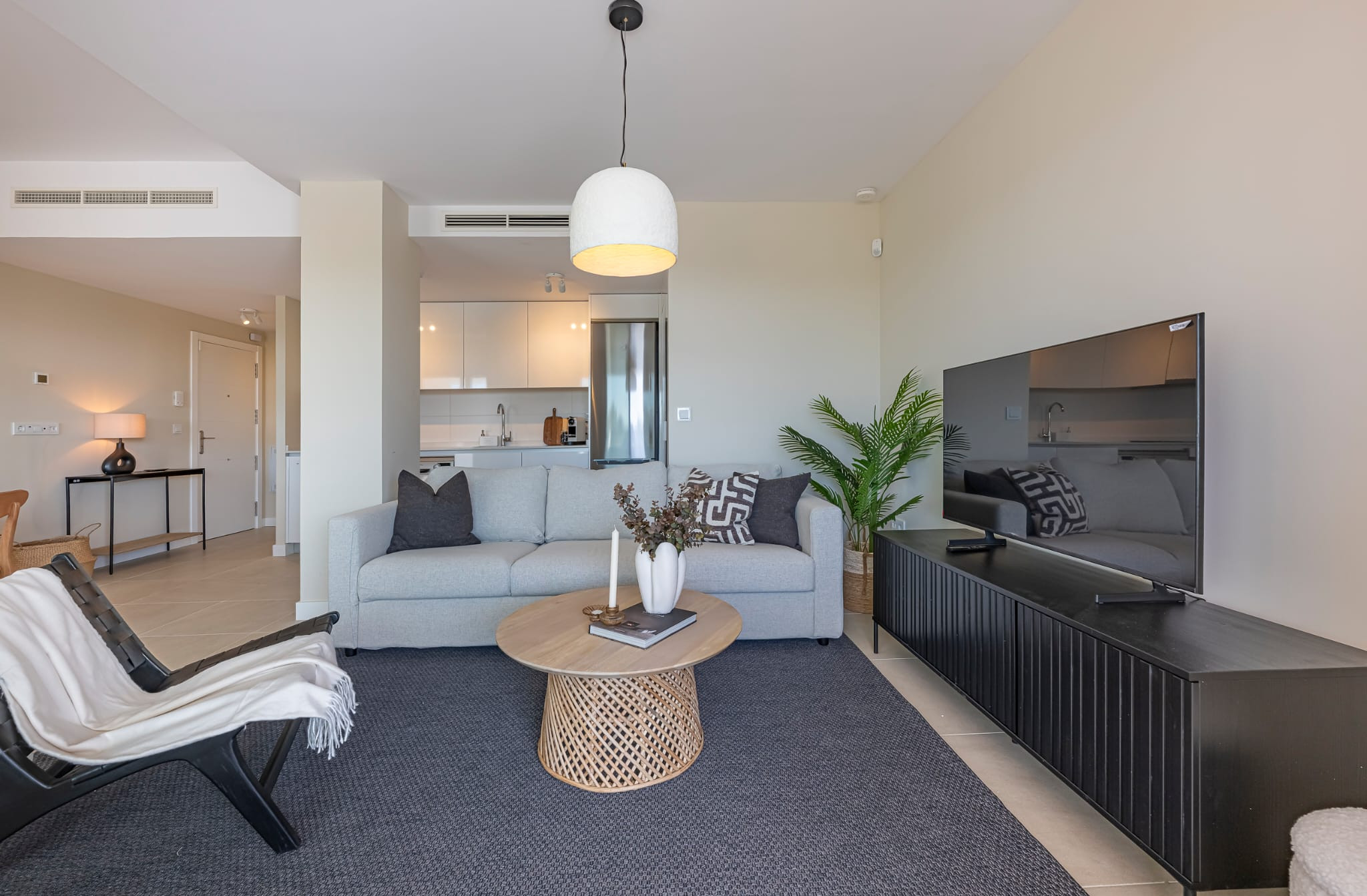 Diese geräumige Drei-Zimmer-Wohnung ist für eine langfristige Miete in der modernen Wohnanlage Aranya verfügbar, die sich im begehrten Gebiet von Estepona Ost befindet. Die Urbanisation bietet hervorragende Gemeinschaftseinrichtungen, darunter wunderschön gepflegte Gärten, einen großen Swimmingpool, ein kleines Fitnessstudio, einen Tennis-/Paddelplatz und einen Kinderspielbereich, was sie ideal für Familien und Menschen macht, die einen aktiven mediterranen Lebensstil suchen.