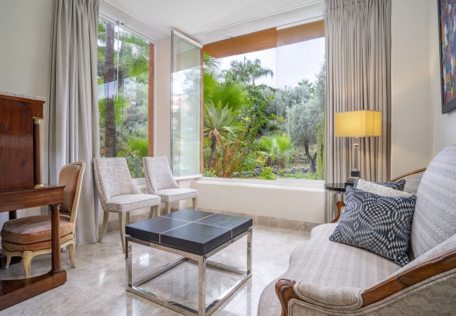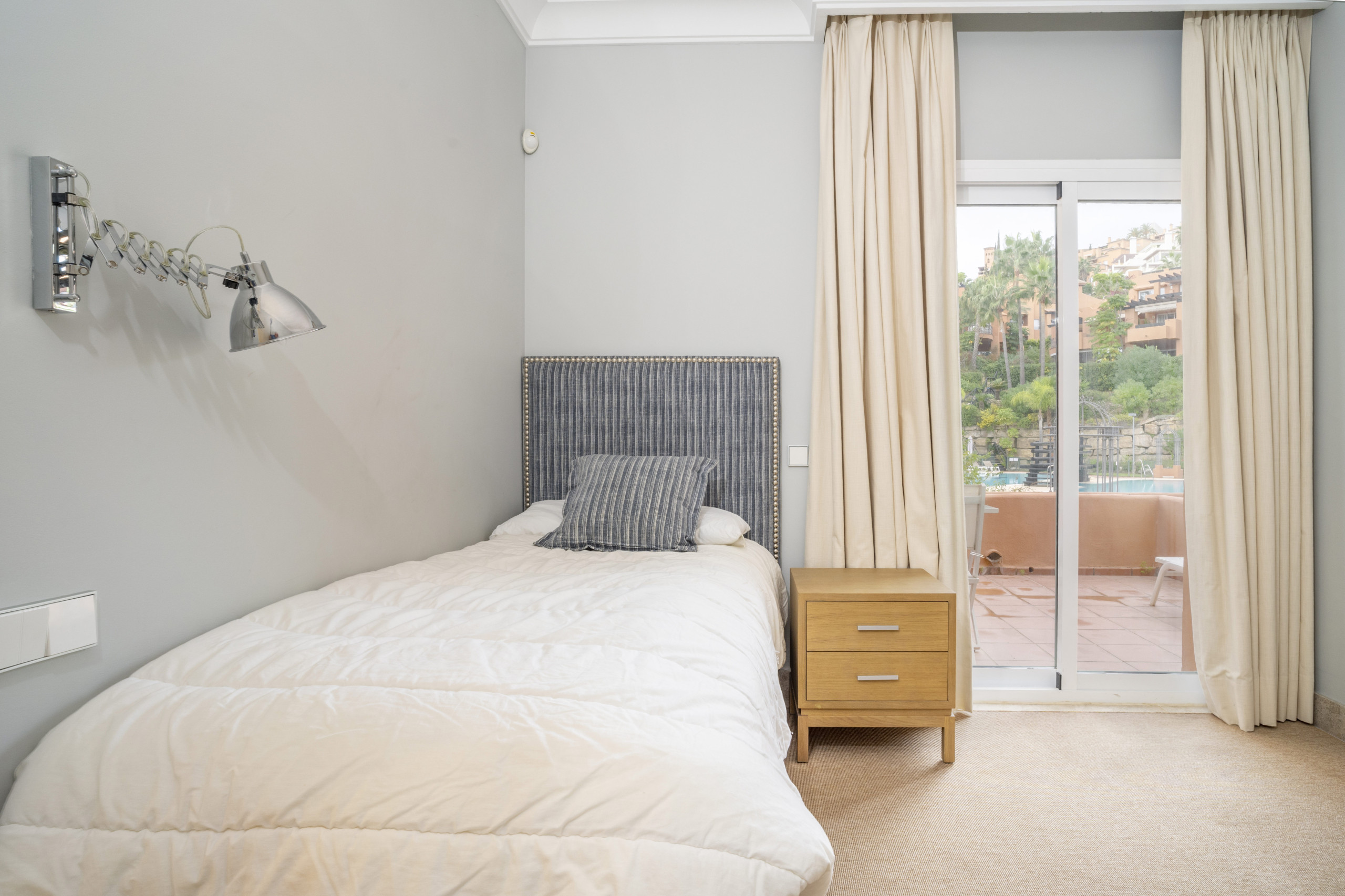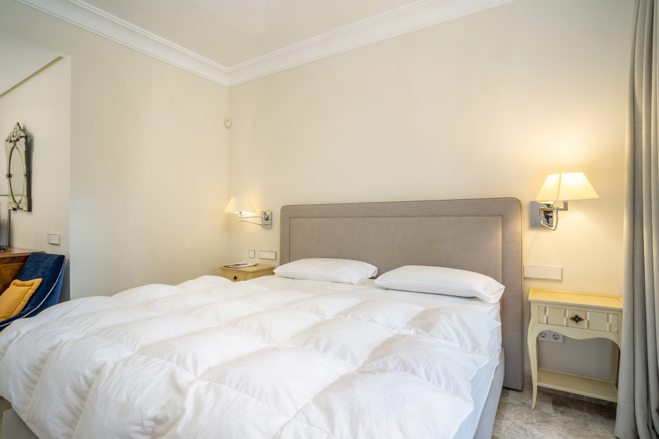 Eine charmante 3-Zimmer-Erdgeschosswohnung steht zur langfristigen Miete in Alminar de Marbella I zur Verfügung, eine der begehrtesten Wohnanlagen in Nueva Andalucía, Marbella. Diese elegante Urbanisation ist von üppigen tropischen Gärten und schönen Schwimmbädern umgeben und bietet eine ruhige und sichere Umgebung, nur wenige Minuten vom lebhaften Leben in Puerto Banús, Top-Golfplätzen und einer großen Auswahl an Restaurants, Geschäften und internationalen Schulen entfernt.