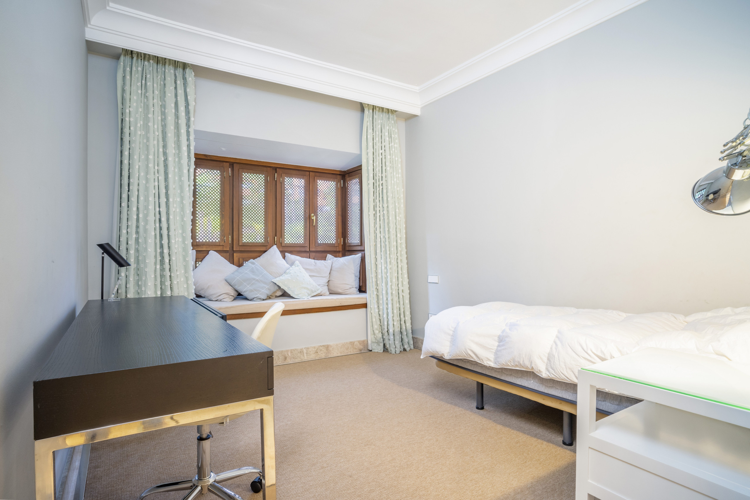 Das Hauptschlafzimmer ist hell und gemütlich, mit einem Doppelbett, einem kleinen privaten Balkon und einem eigenen Badezimmer mit einer begehbaren Dusche und einer Badewanne. Die beiden zusätzlichen Schlafzimmer verfügen jeweils über ein Einzelbett und teilen sich ein zweites Badezimmer mit einer Badewanne, was dieses Zuhause ideal für Familien oder Berufstätige macht, die Platz und Komfort suchen. Zusätzlich gibt es eine Gästetoilette, die Bewohnern und Besuchern gleichermaßen zusätzlichen Komfort bietet.