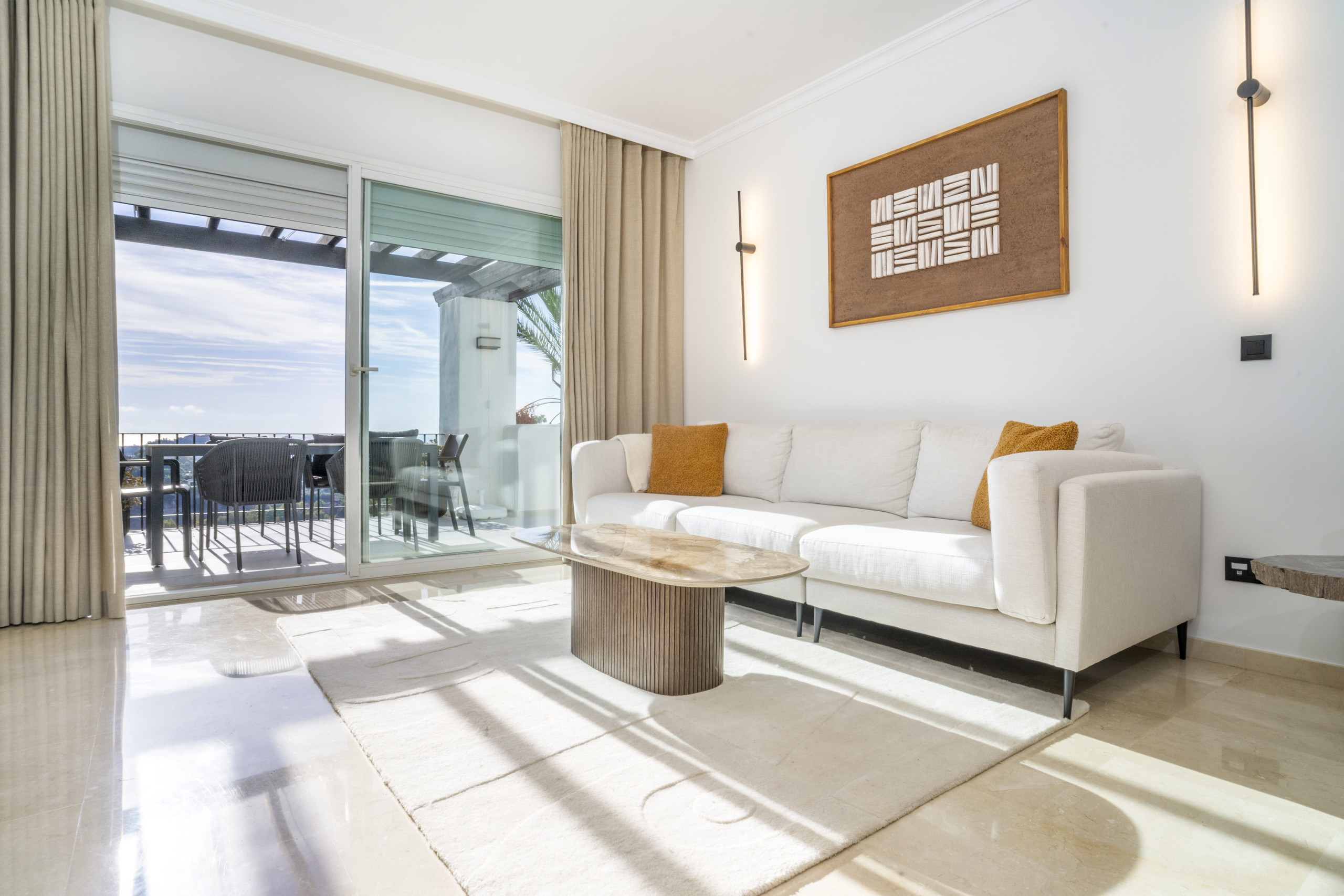 Durchdacht aktualisiert mit einem warmen, zeitgemäßen Stil, fühlt sich die Wohnung sowohl gemütlich als auch geräumig an, konzipiert für komfortables Wohnen das ganze Jahr über. Gelegen an einem ruhigen Ort, weit genug vom Trubel entfernt, um Lärm zu vermeiden, und doch nur eine kurze Fahrt von La Quinta Golf, Puerto Banús und allen Annehmlichkeiten entfernt, ist dies ein Zuhause, das ruhiges Wohnen mit Bequemlichkeit in Einklang bringt.