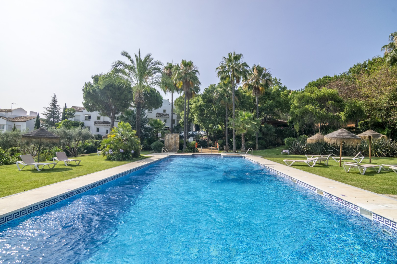 Von nur einem angrenzenden Nachbarn in jedem Gebäude zu profitieren, garantiert Ruhe und Privatsphäre. Draußen locken die üppigen Gemeinschaftsgärten mit einem funkelnden Swimmingpool für Erwachsene und Kinder gleichermaßen.