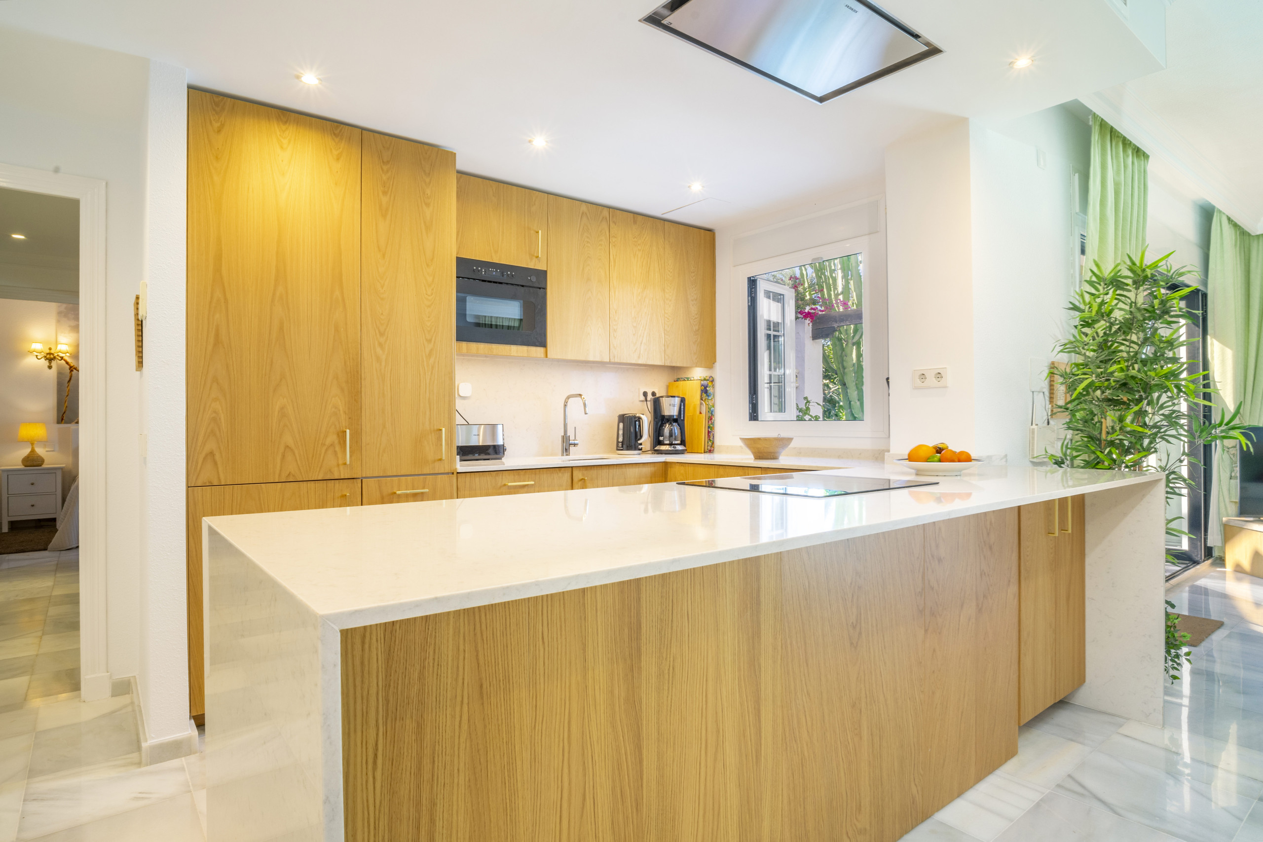 Das Highlight der Immobilie ist ihre große Terrasse, eine der wenigen dieser Größe in Aldea Blanca. Von hier aus bietet ein privates Tor direkten Zugang zum großen Gemeinschaftspool, was es ideal für entspannte Tage zu Hause macht.