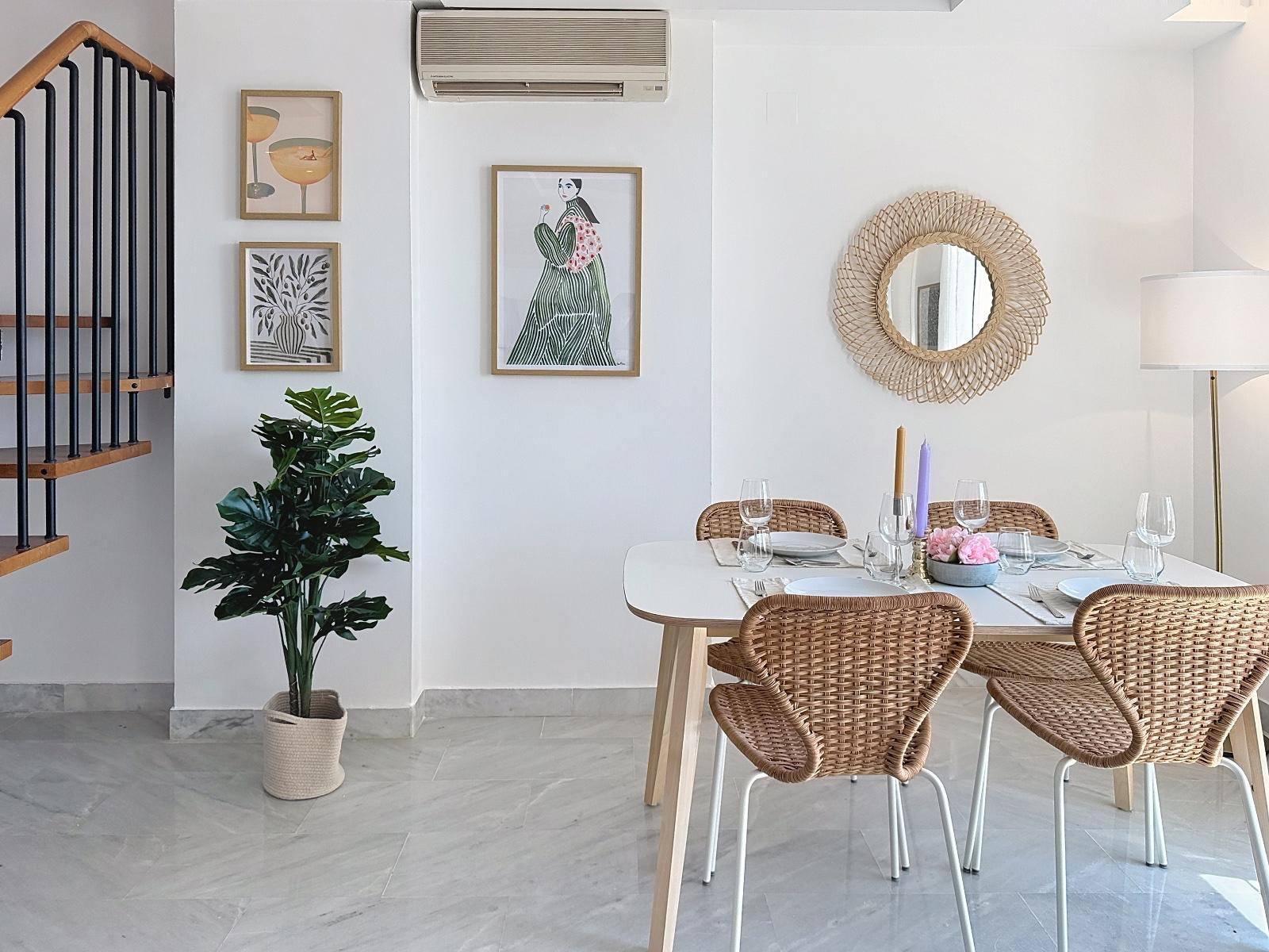 Die Küche behält ihren andalusischen Charme und bietet volle Funktionalität für jeden Anlass, von einfachen Frühstücken vor dem Strandbesuch bis hin zu genussvollen Abendessen, die mit Familie oder Freunden geteilt werden.