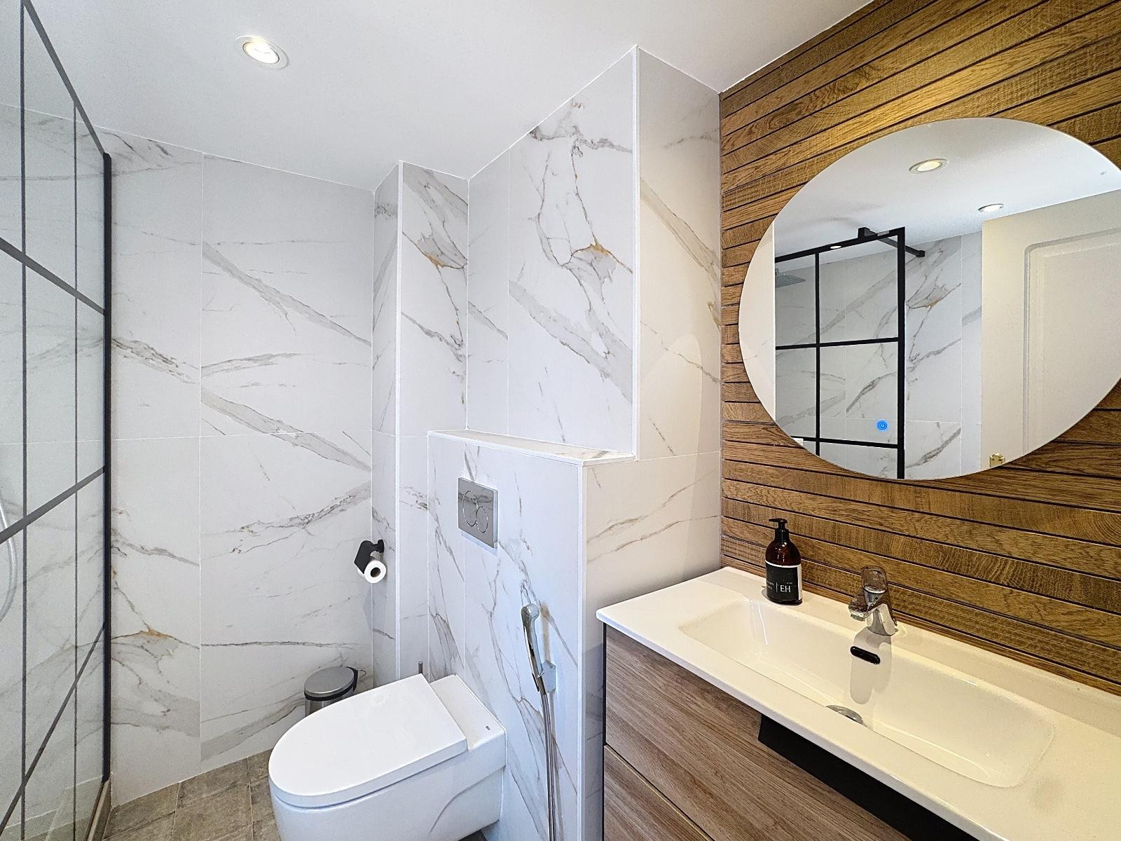 Die Wohnung verfügt über zwei geräumige Schlafzimmer, zwei moderne Badezimmer und ein komfortables Schlafsofa, das bis zu sechs Gäste beherbergen kann. Kürzlich mit neuer Möblierung, Betten und Dekoration renoviert, fühlt sie sich frisch und modern an und bewahrt gleichzeitig eine warme, heimelige Atmosphäre. Mit Klimaanlage in jedem Raum und High-Speed-WLAN ist es einfach, während Ihres Aufenthalts zu arbeiten, zu entspannen oder zu streamen.