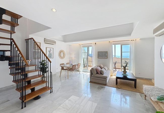 Willkommen in diesem hellen Penthouse im Señorio de Aloha, einer perfekten Basis für Familien, Freunde oder Paare, die Marbella besuchen. Es befindet sich im obersten Stockwerk einer sicheren, gut gepflegten Gemeinschaft und verbindet entspannte Behaglichkeit mit atemberaubenden Blicken auf das Mittelmeer und La Concha.