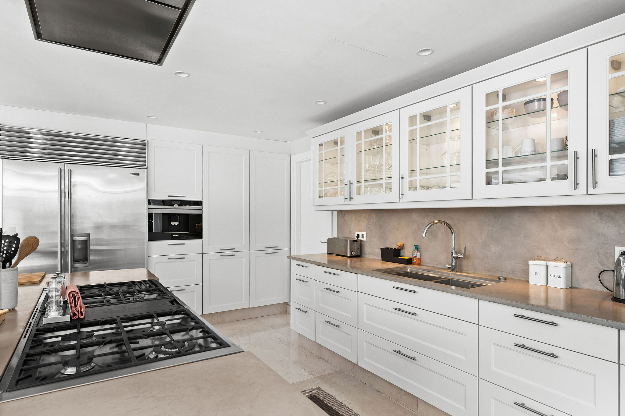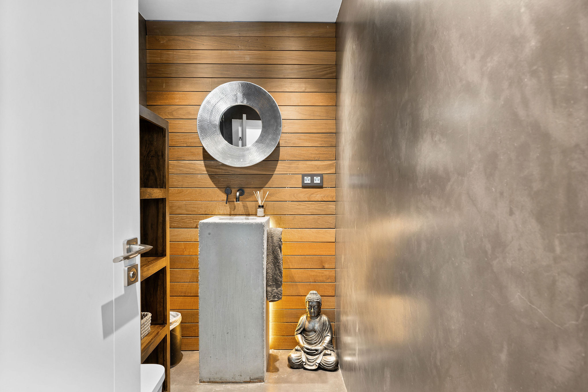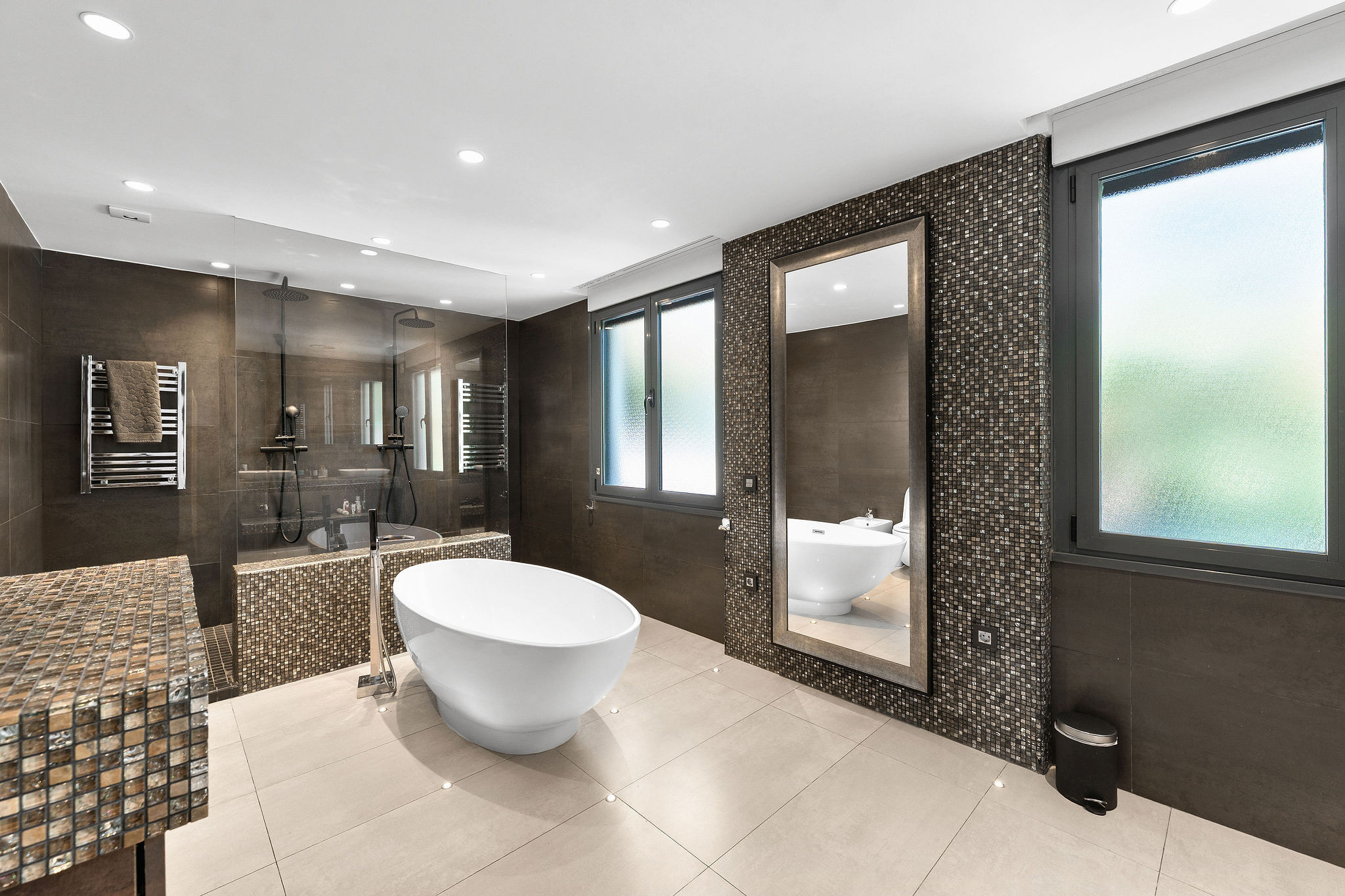 Im Obergeschoss bieten der Hauptschlafraum und zusätzliche Schlafzimmer luxuriöse private Badezimmer und Zugang zu einer großzügigen Terrasse, perfekt zum Sonnenbaden. Das Hauptschlafzimmer mit Bad verfügt über atemberaubende Ausblicke auf die umgebenden Bäume, eine große Terrasse, einen geräumigen Ankleideraum und ein luxuriöses Badezimmer mit Dusche und Badewanne.