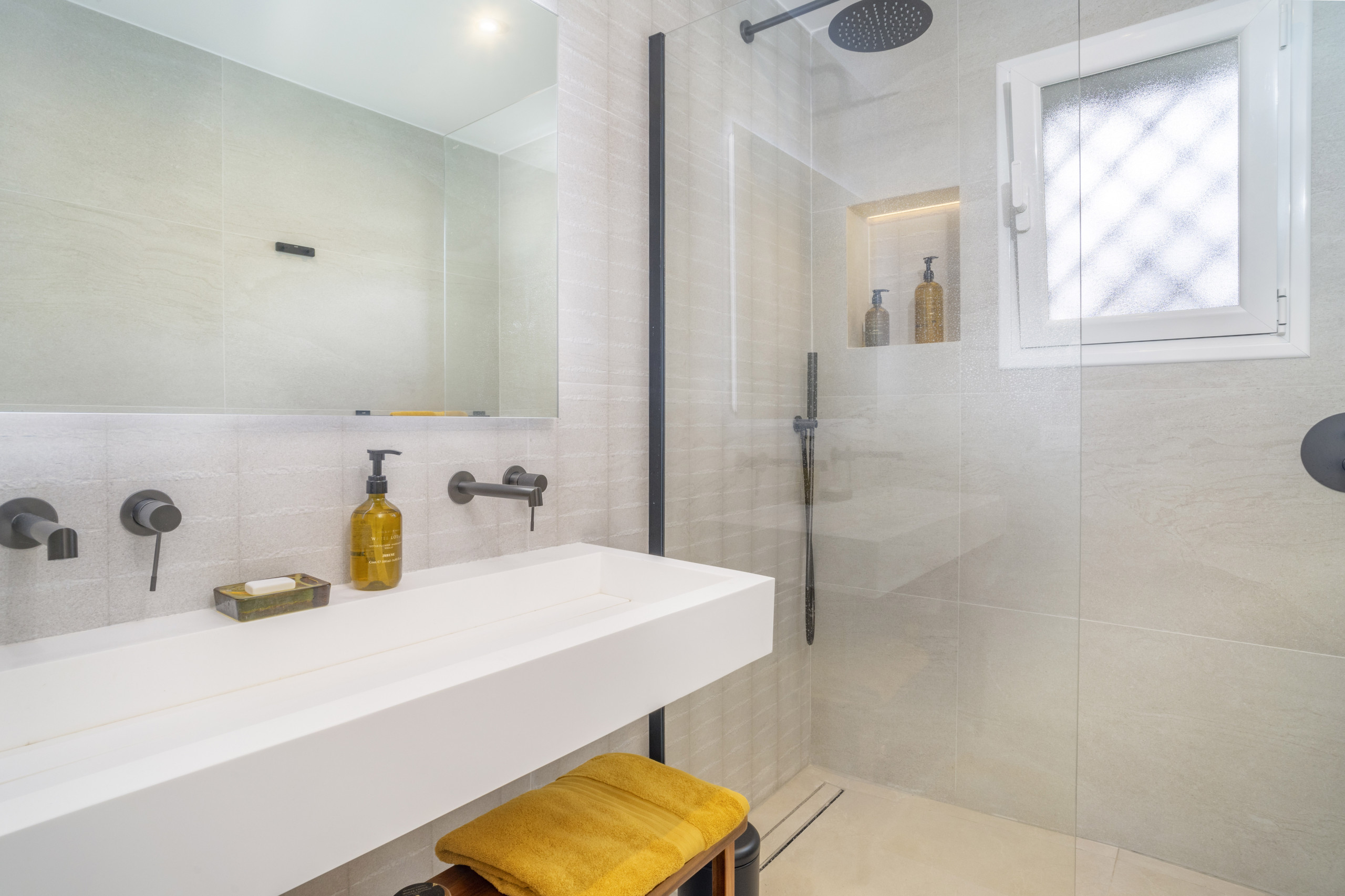 La propiedad ofrece tres dormitorios bien equipados, incluyendo un amplio dormitorio principal con un baño en suite, y dos dormitorios adicionales que comparten un moderno baño familiar. Cada espacio ha sido diseñado pensando tanto en la comodidad como en la funcionalidad.