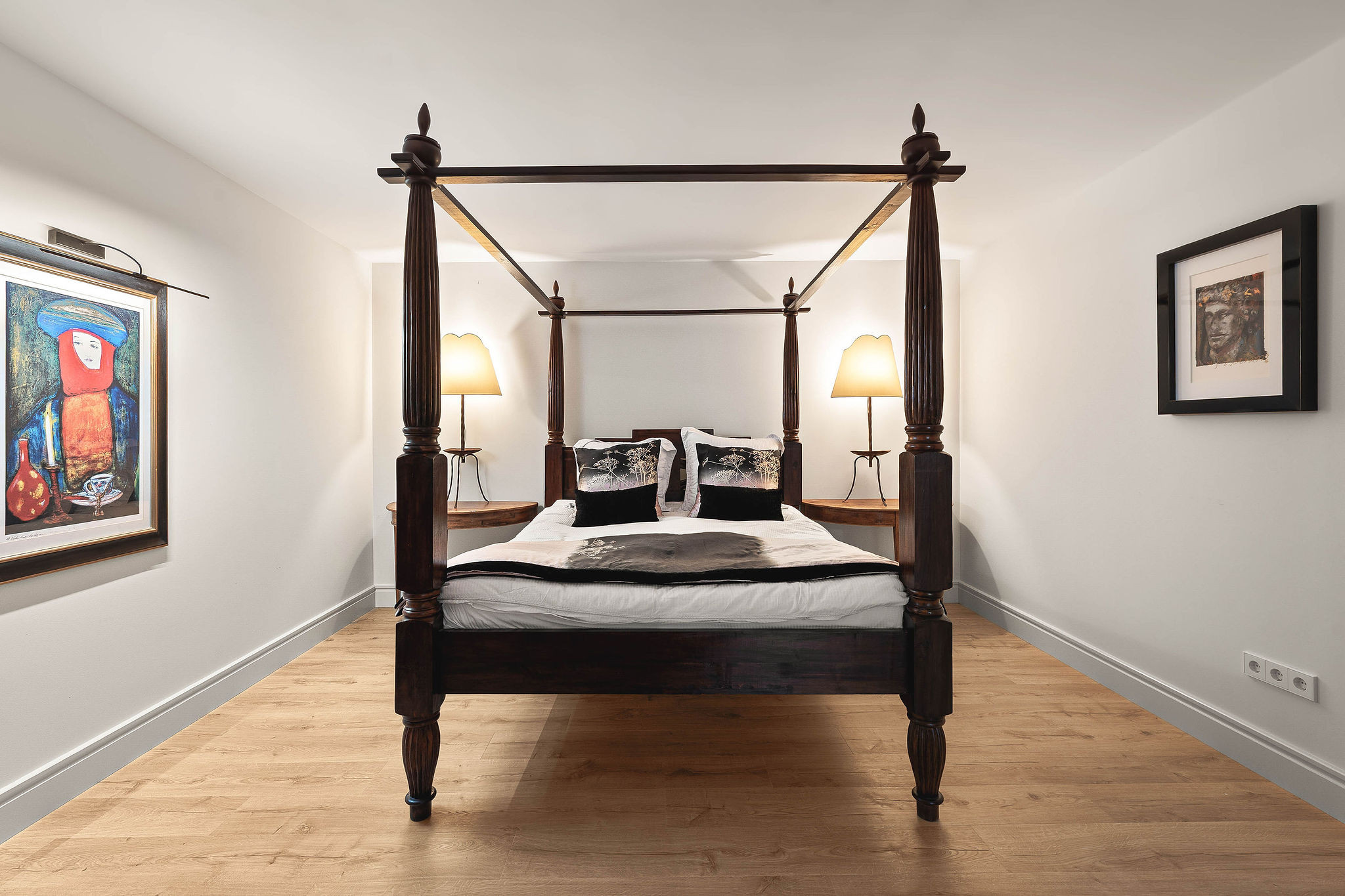 El nivel inferior de la villa ofrece aún más para disfrutar, incluyendo una sauna privada y dos dormitorios adicionales, perfectos para huéspedes que buscan privacidad extra.