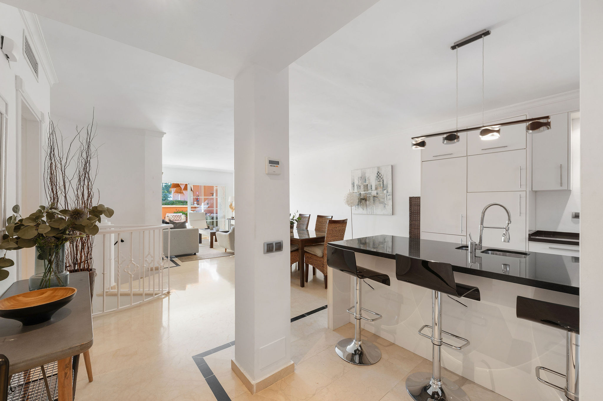 Ce duplex spacieux de 4 chambres est un excellent choix pour une location de vacances dans le très recherché Andalucia Alta, situé à l'entrée de Nueva Andalucia. Situé dans une urbanisation bien établie et sécurisée, la propriété est entourée de jardins matures magnifiquement entretenus qui créent une atmosphère paisible de type resort. Les familles apprécieront particulièrement le petit aire de jeux pour enfants, tandis que la zone de piscine commune est parfaite pour se détendre sous le soleil méditerranéen. L'un des points forts d'Andalucia Alta est sa situation privilégiée, offrant la rare commodité d'être à distance de marche de tous les services, ce qui en fait une base idéale pour des vacances sans voiture sur la Costa del Sol.