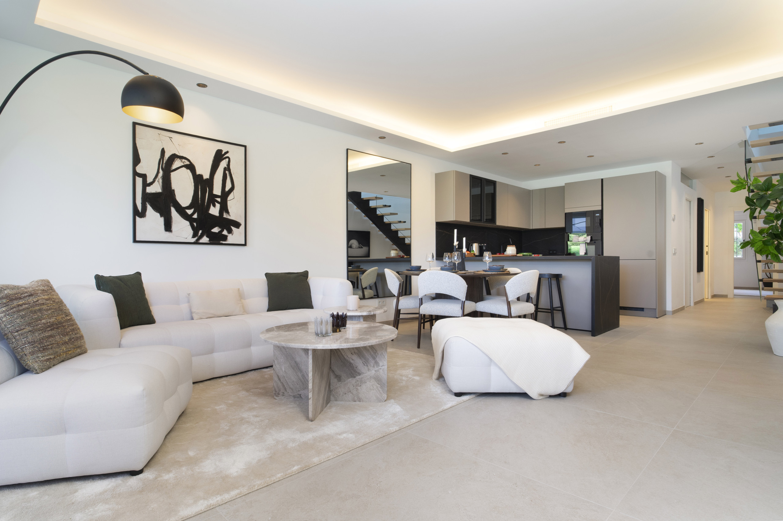 L'espace de vie dispose de portes pliantes larges créant une vie intérieure-extérieure transparente. La terrasse est simplement incroyable, offrant des zones couvertes et ouvertes pour se détendre et profiter du soleil. Profitez de longues soirées d'été avec un barbecue, dînez en plein air, ou détendez-vous sur le canapé extérieur et le lit de jour tout en savourant le style de vie méditerranéen.