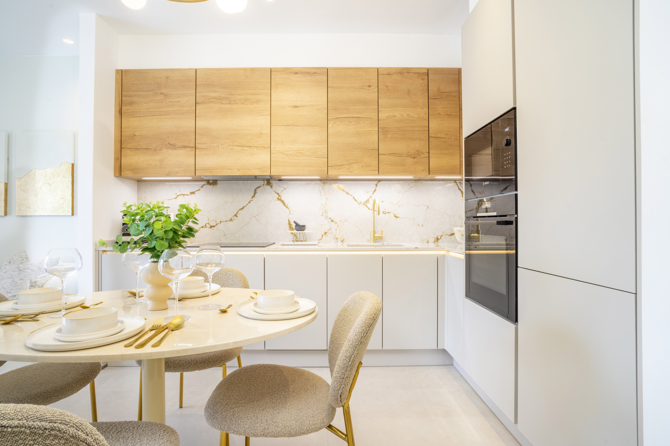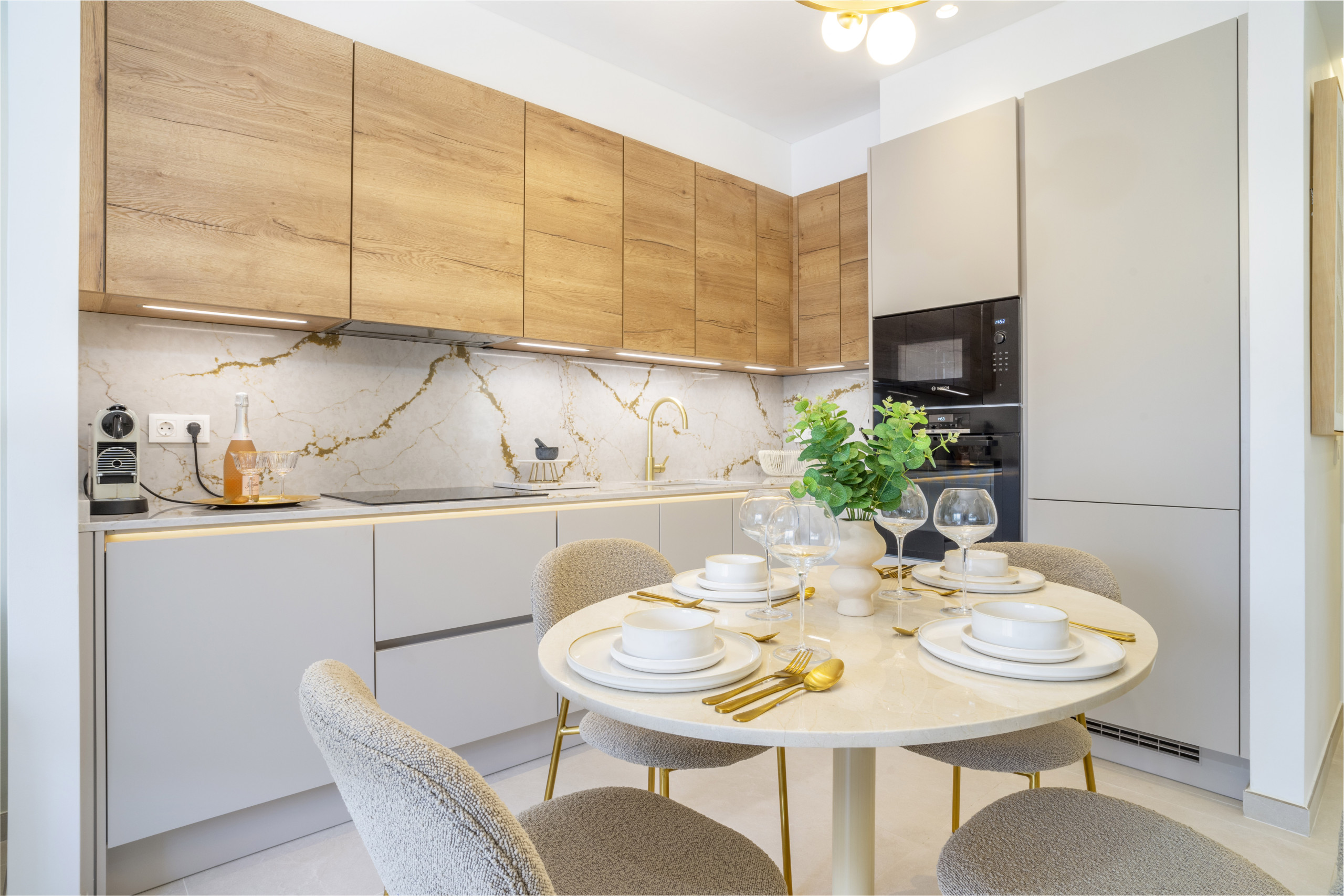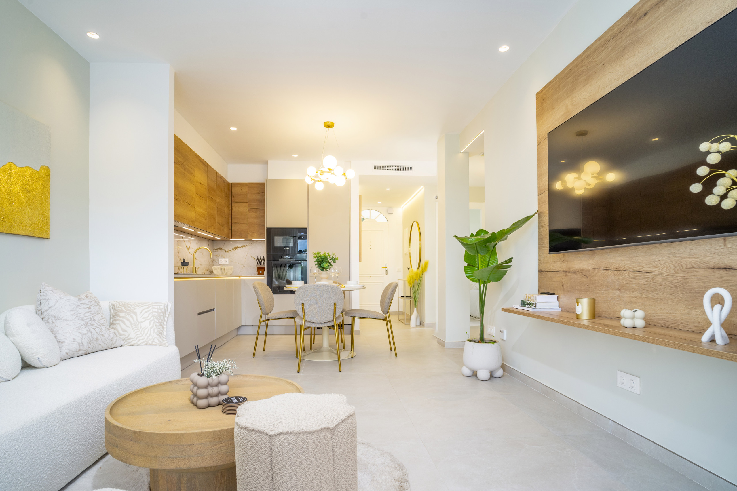 À l'intérieur, le penthouse présente un design moderne et élégant avec des finitions de haute qualité partout. La cuisine et la salle à manger ouvertes et épurées se prolongent harmonieusement dans un salon élégant, créant un espace confortable et accueillant pour la vie quotidienne et les divertissements.