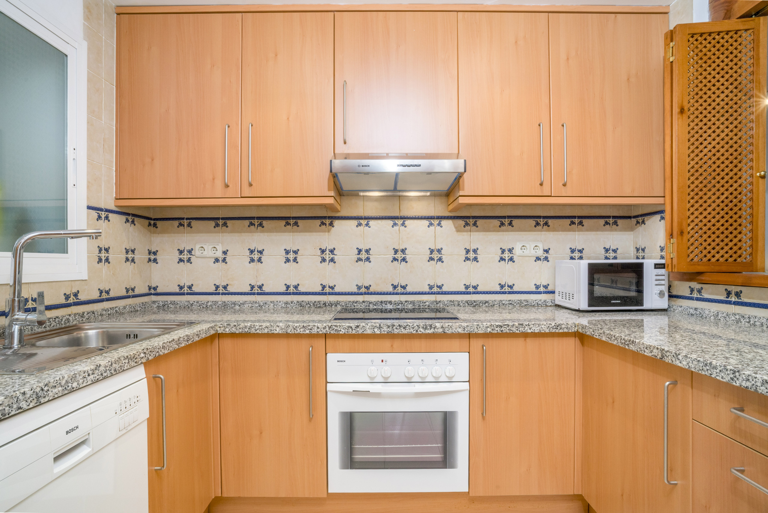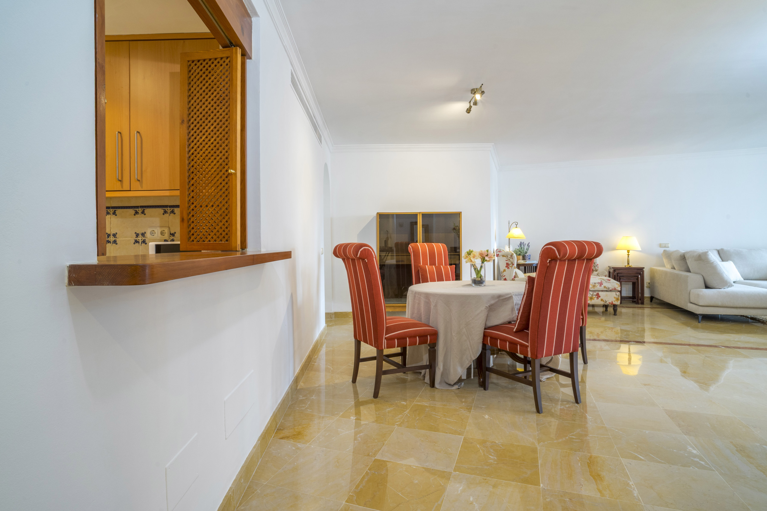 The apartment features a spacious and light-filled living and dining area, seamlessly connected to a covered terrace—perfect for relaxing or entertaining while enjoying the surroundings of La Quinta. The independent kitchen is fully fitted and complemented by a separate laundry room for added convenience.