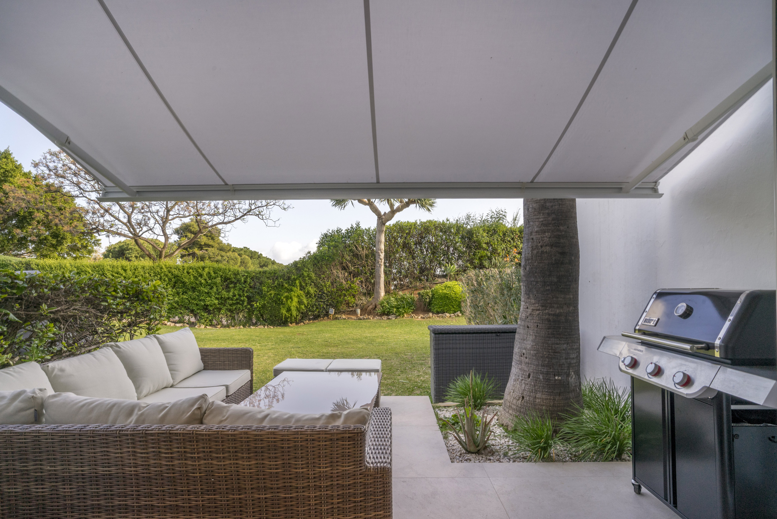 The living area has wide bifold doors creating seamless indoor-outdoor living . The terrace is simply amazing, offering both covered and open areas to relax and enjoy the sun. Enjoy long summer evenings with a BBQ, dine al fresco, or lounge on the outdoor sofa and day bed while soaking up the Mediterranean lifestyle.