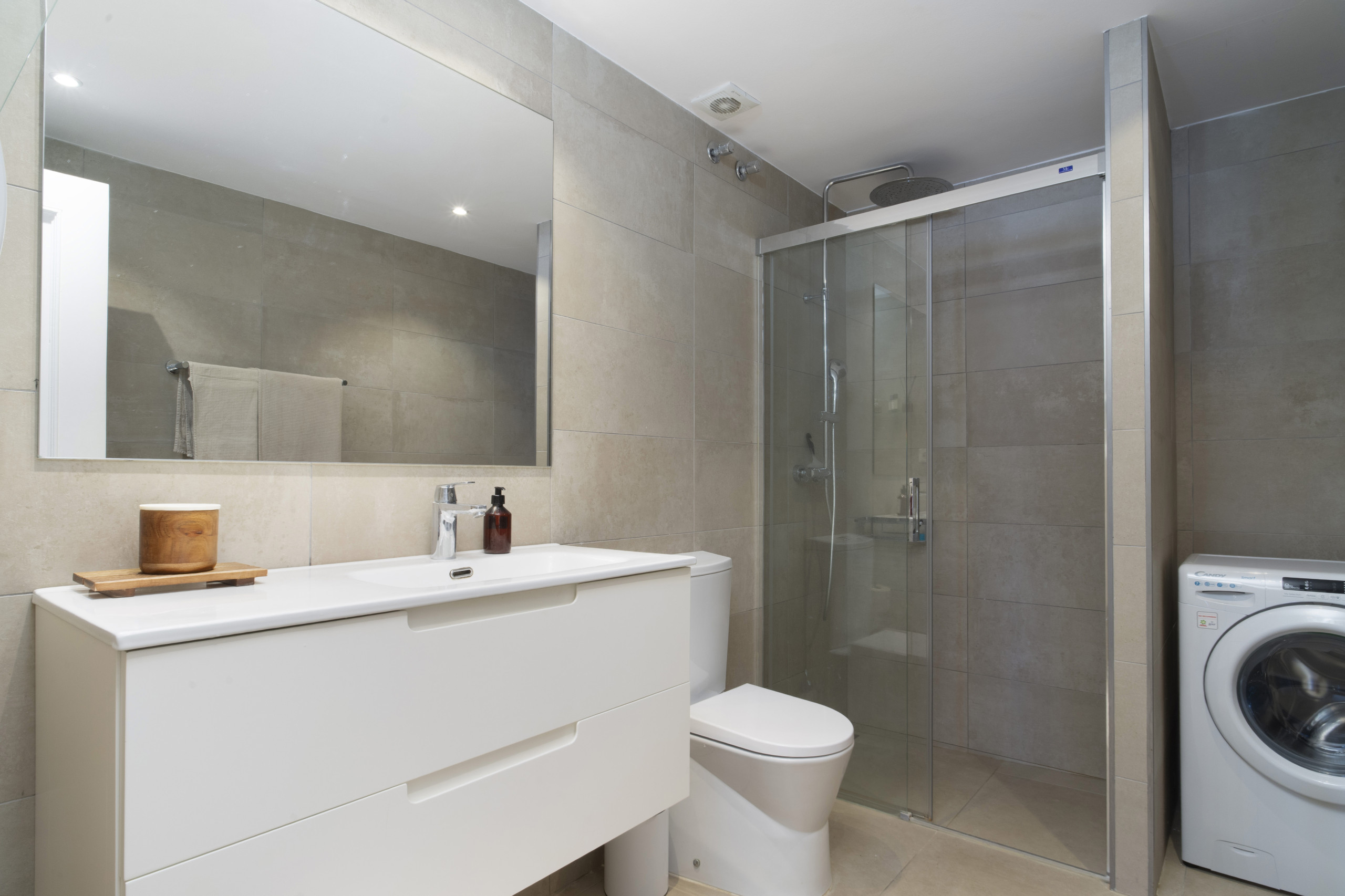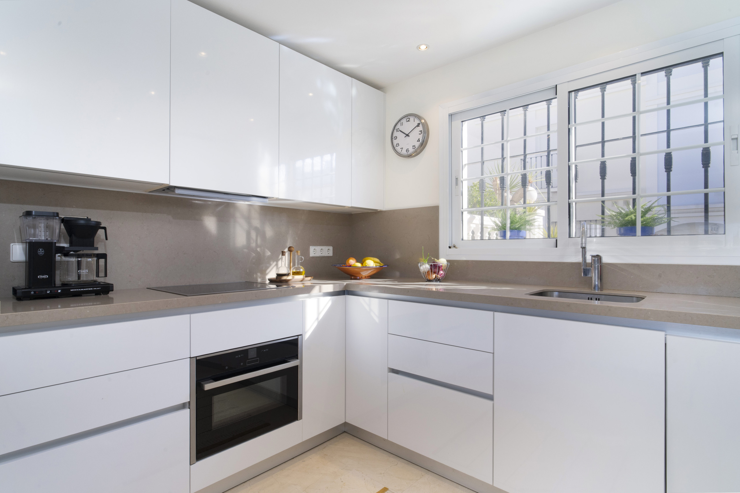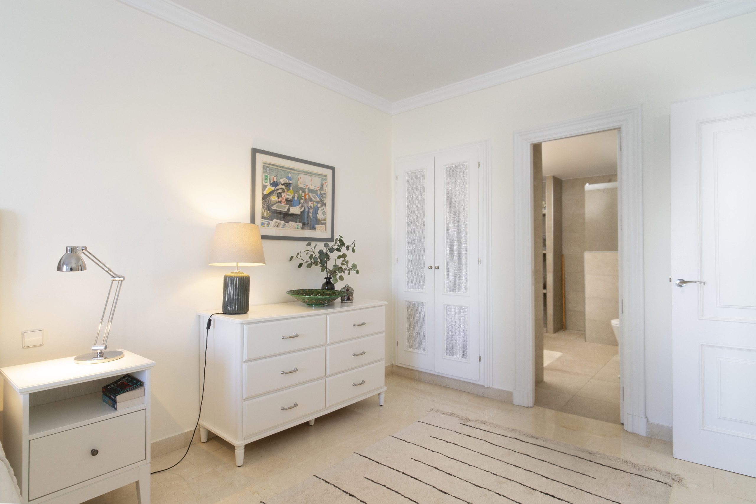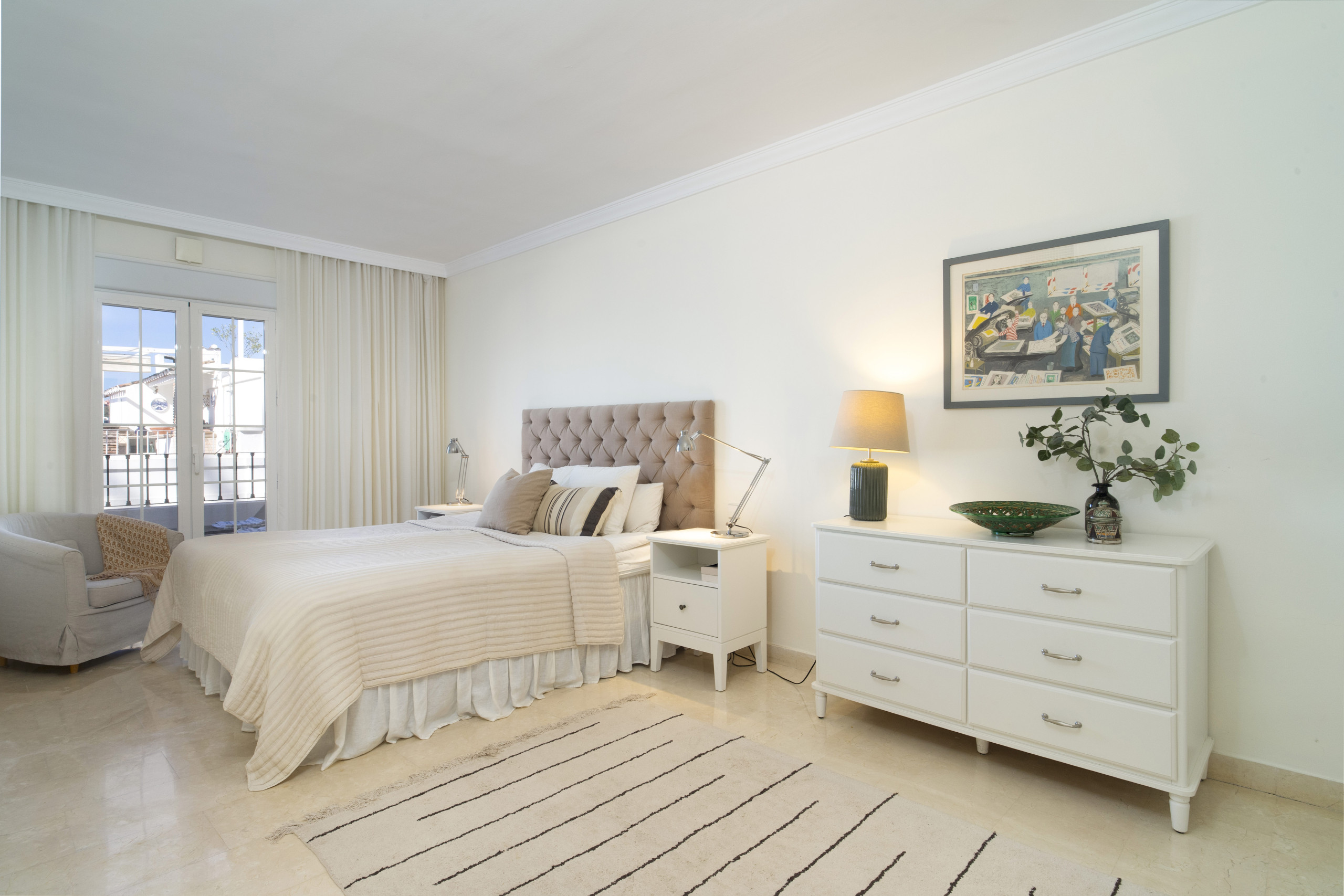 När du träder in i denna inbjudande hyreslägenheten välkomnas du av ett ljust och luftigt öppet planlösningsrum på första våningen. Stora fönster ramar in vackra vyer över Marbella, medan det öppna köket och vardagsrummet skapar den perfekta miljön för avslappnad inomhus-utomhus-vistelse. Glasdörrarna öppnas helt, vilket gör att du sömlöst kan förbinda interiören med den omgivande scenografin.