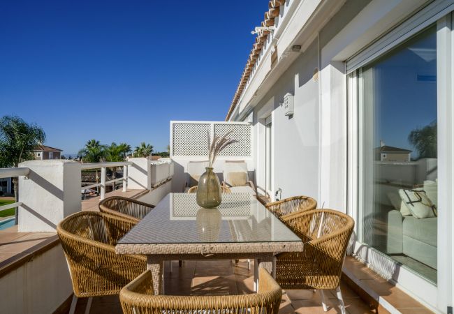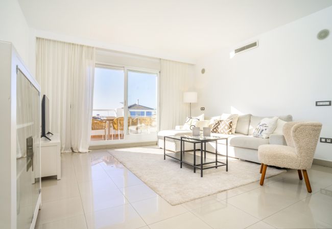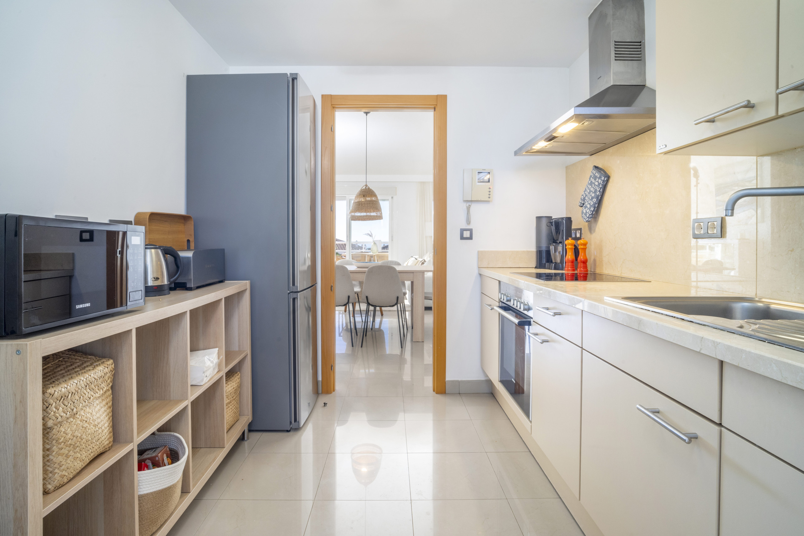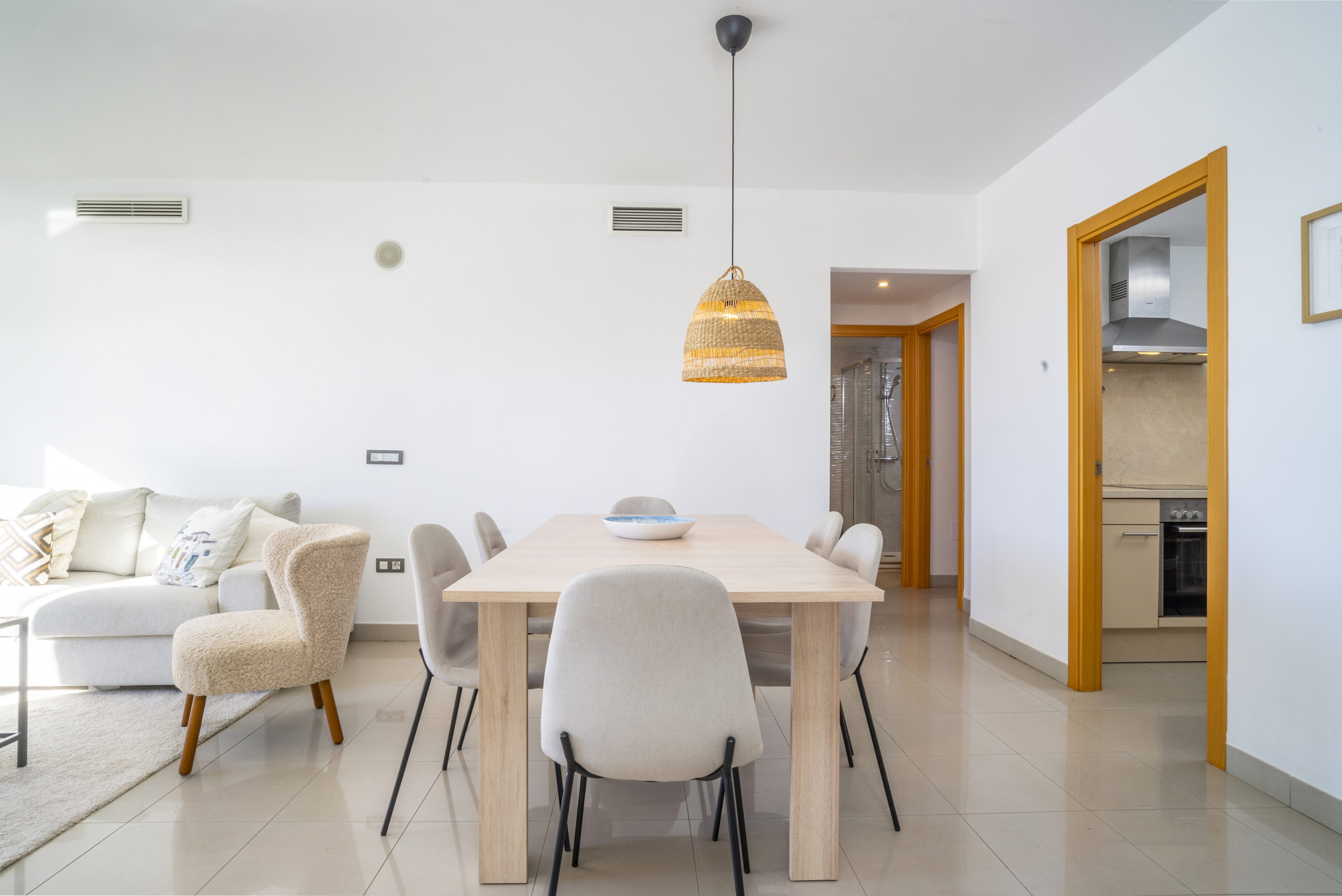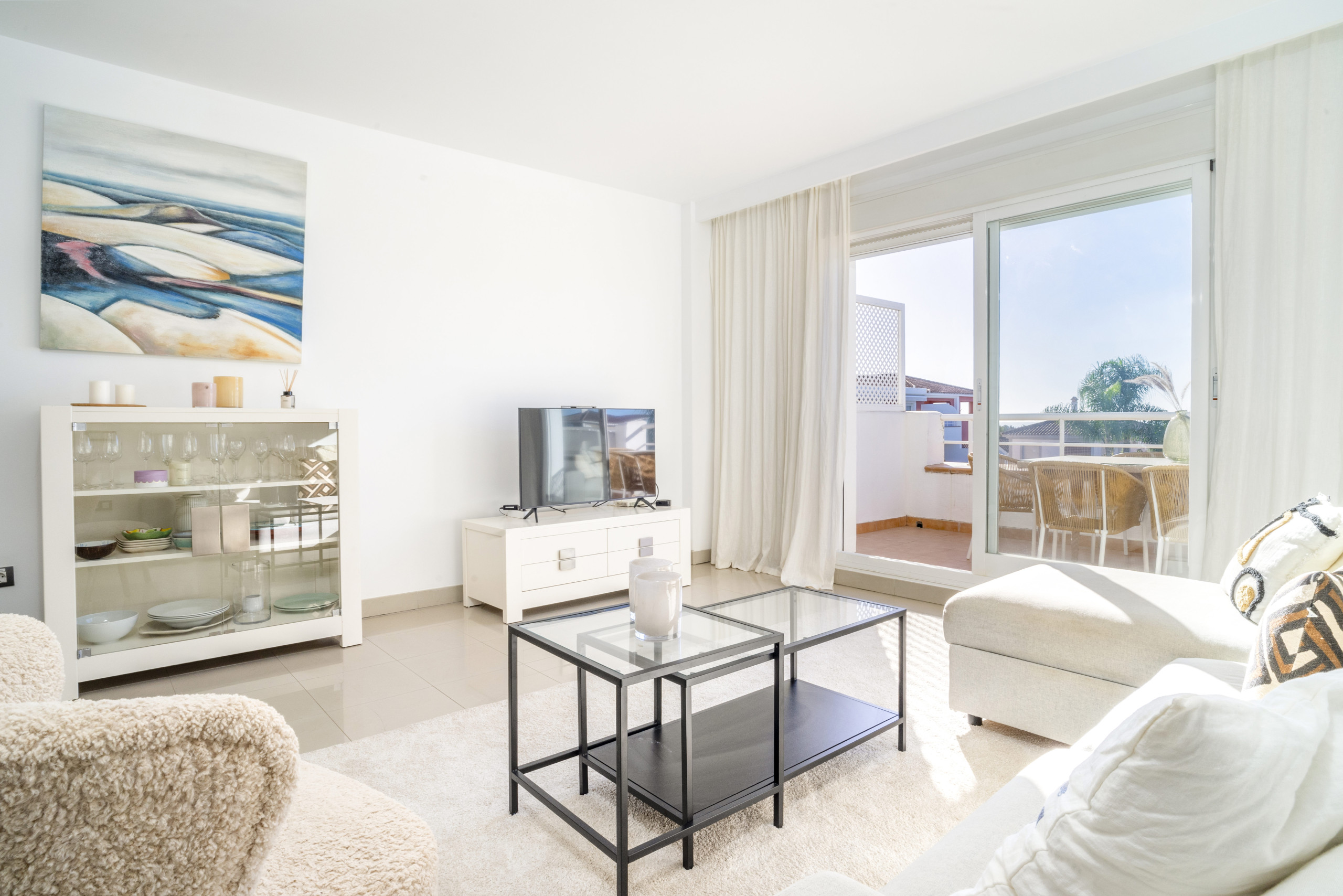 Välkommen till denna exceptionella hyreslägenhet med 2 sovrum och 2 badrum i det prestigefyllda Bahia de la Plata, beläget vid stranden med direkt tillgång till den pittoreska strandpromenaden. Detta vackert designade hem erbjuder ett rymligt vardagsrum, översvämmat med naturligt ljus, vilket skapar en ljus och välkomnande atmosfär.