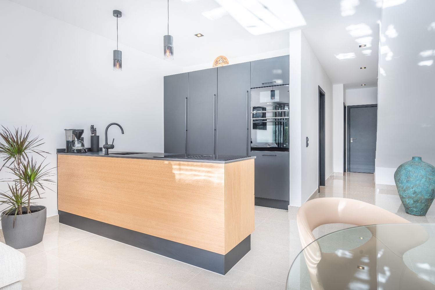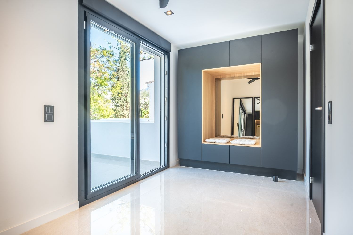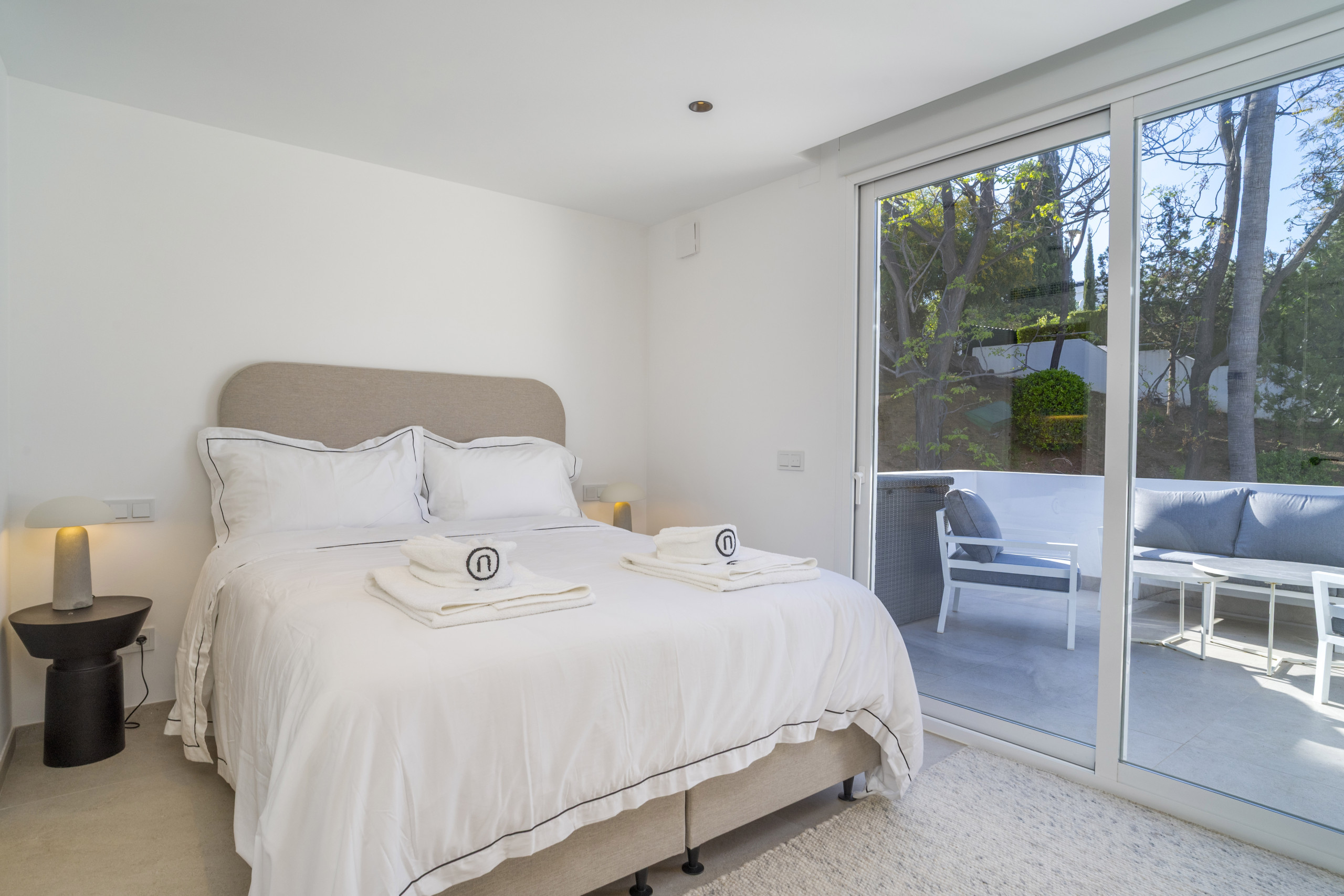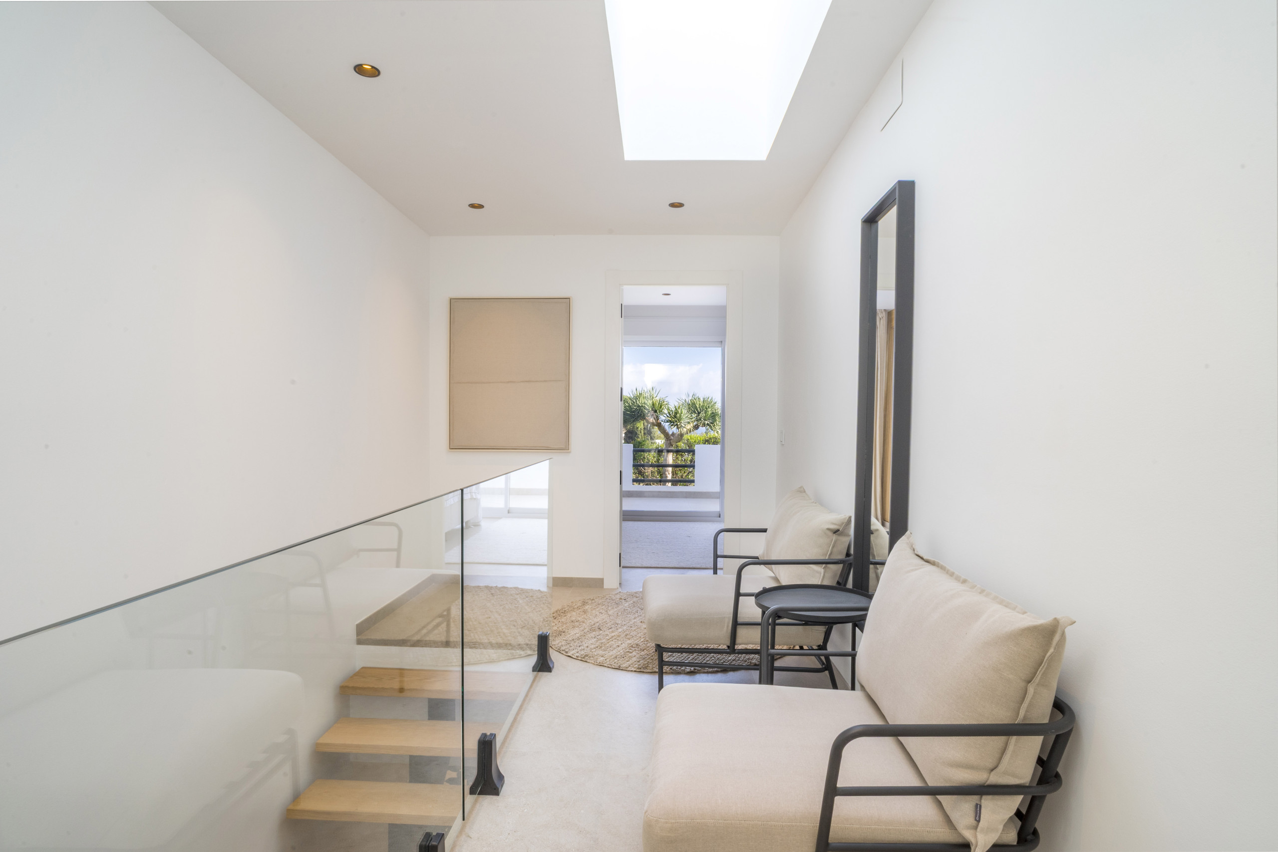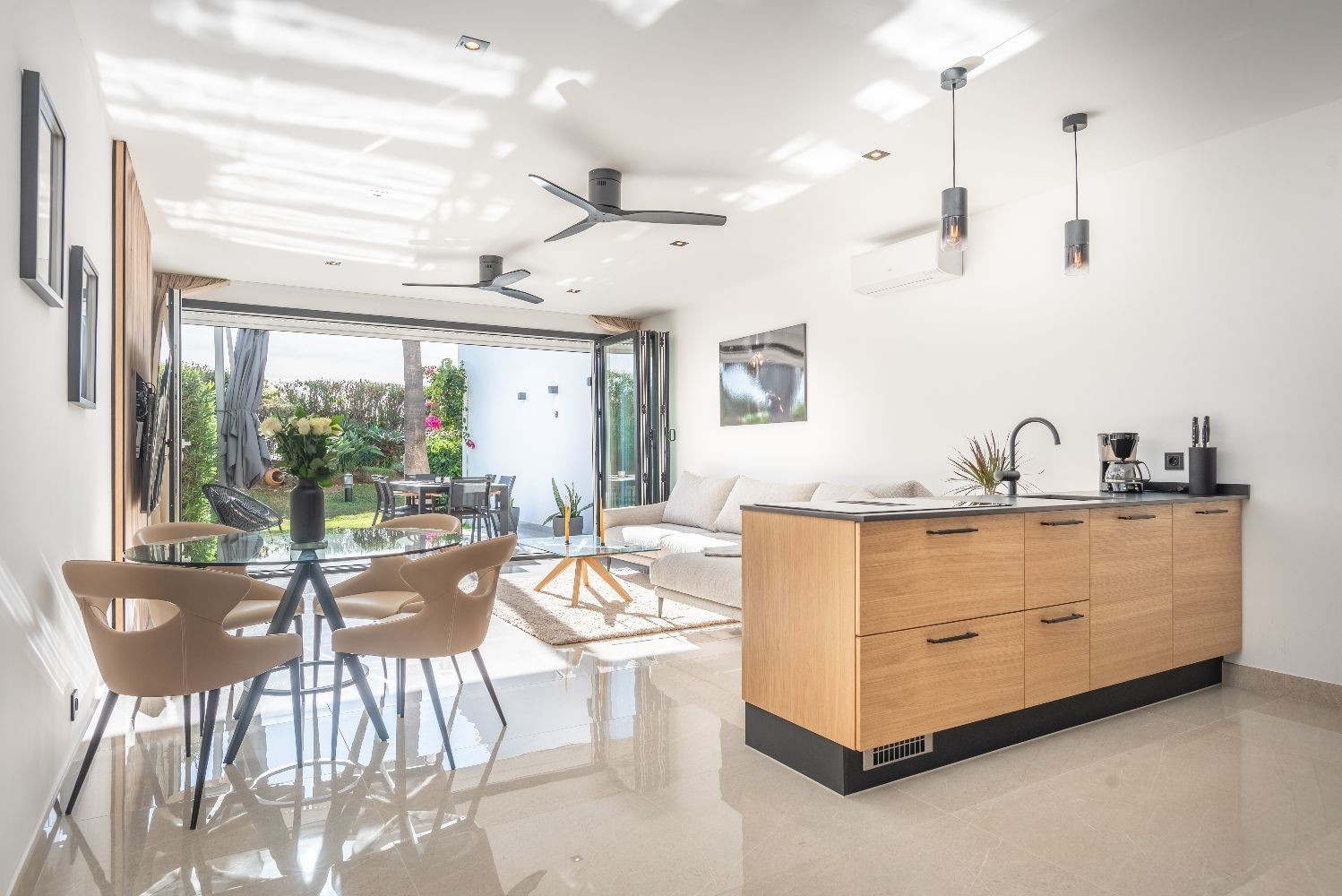 Boendeområdet har breda vikdörrar som skapar en sömlös inomhus-utomhus-känsla. Terrassen är helt fantastisk och erbjuder både täckta och öppna ytor för avkoppling och solnjutning. Njut av långa sommarkvällar med en grill, ät middag utomhus eller vila på utesoffan och dagbädden medan du tar in den medelhavska livsstilen.