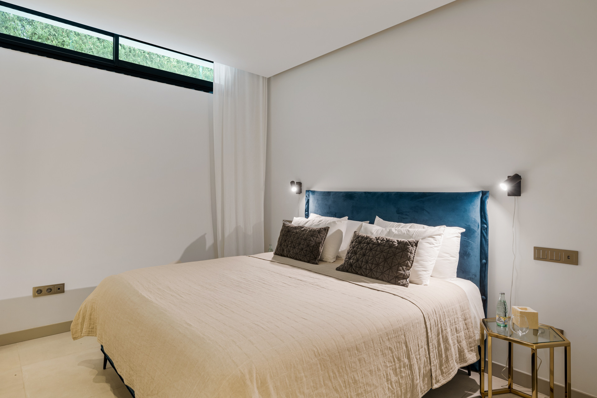 Vi presenterar denna eleganta och moderna villa på ett perfekt läge om du letar efter en villa med gångavstånd till alla bekvämligheter. Det är svårt att hitta en modern villa som denna på ett sådant idealiskt läge. Det är bara en kort 5 - 7 minuters promenad till Puerto Banus och stränderna. Dessutom ligger ännu närmare Centro Plaza som har en rad kaféer, ett gym, butiker och en berömd lördagsmarknad.