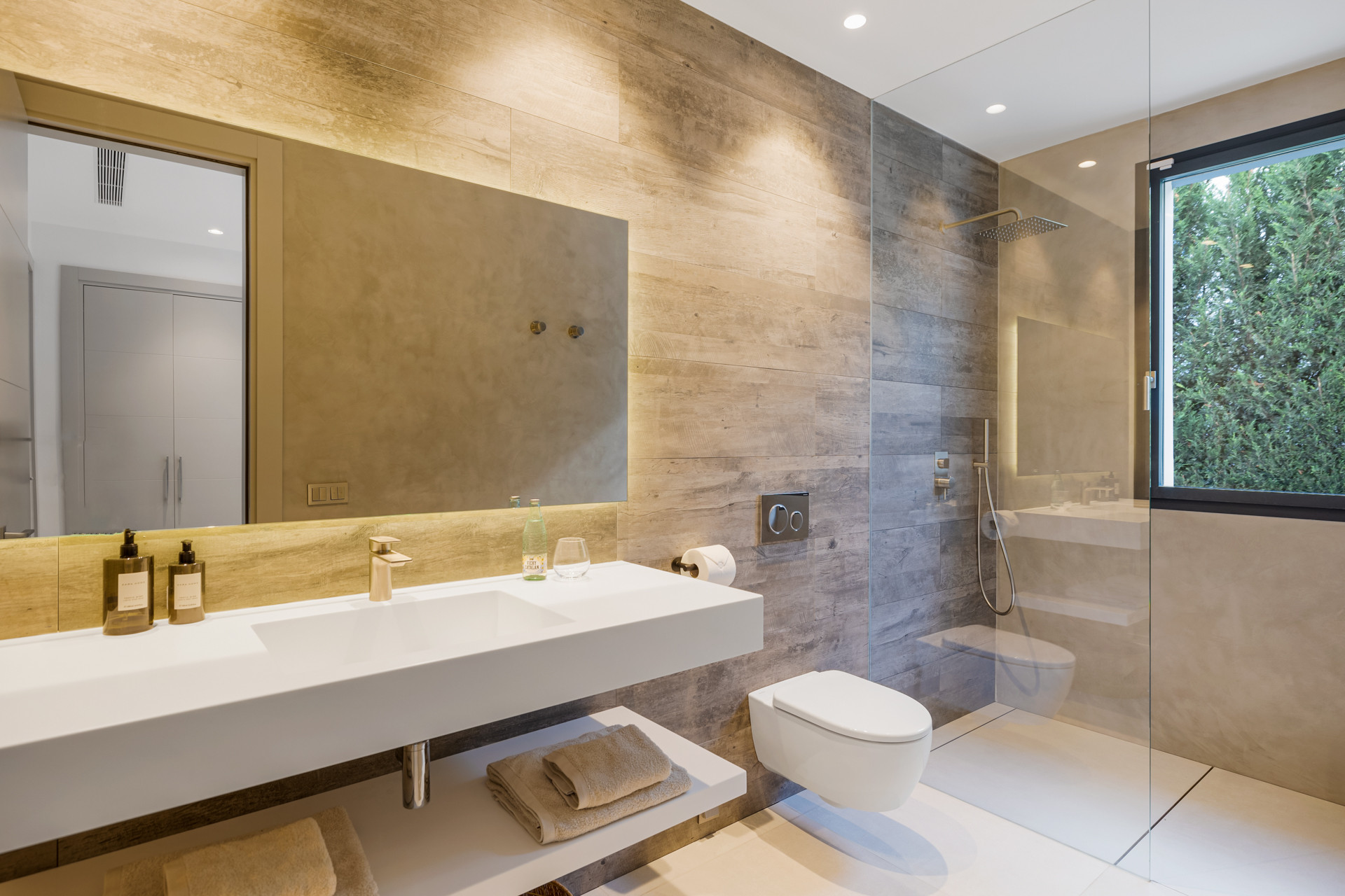 Villan erbjuder 5 fantastiska sovrum med eget badrum och lyxiga ytbehandlingar i hela huset. På entréplanet har du det eleganta öppna köket i öppen planlösning med frukostbar, en matplats lounge med Smart TV. Ett vackert ljust utrymme med stora glasdörrar som leder till terrassen, trädgården och poolen. Poolen kan värmas upp mot en extra kostnad.